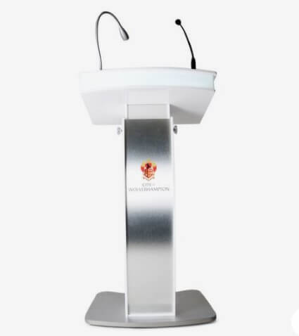 Meja Podium Umumnya terletak akan bersisihan dengan meja rapat. Karena ini diperlukan saat rapat untuk presentasi, pidato atau sampaikan informasi di muka beberapa orang. Meja podium seharusnya tidak berbobot begitu berat supaya gampang diangkat dan dipindah.